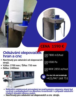 Predám nové jedno-vrecové odsávanie vhodné k olepovačke a CNC stroju.